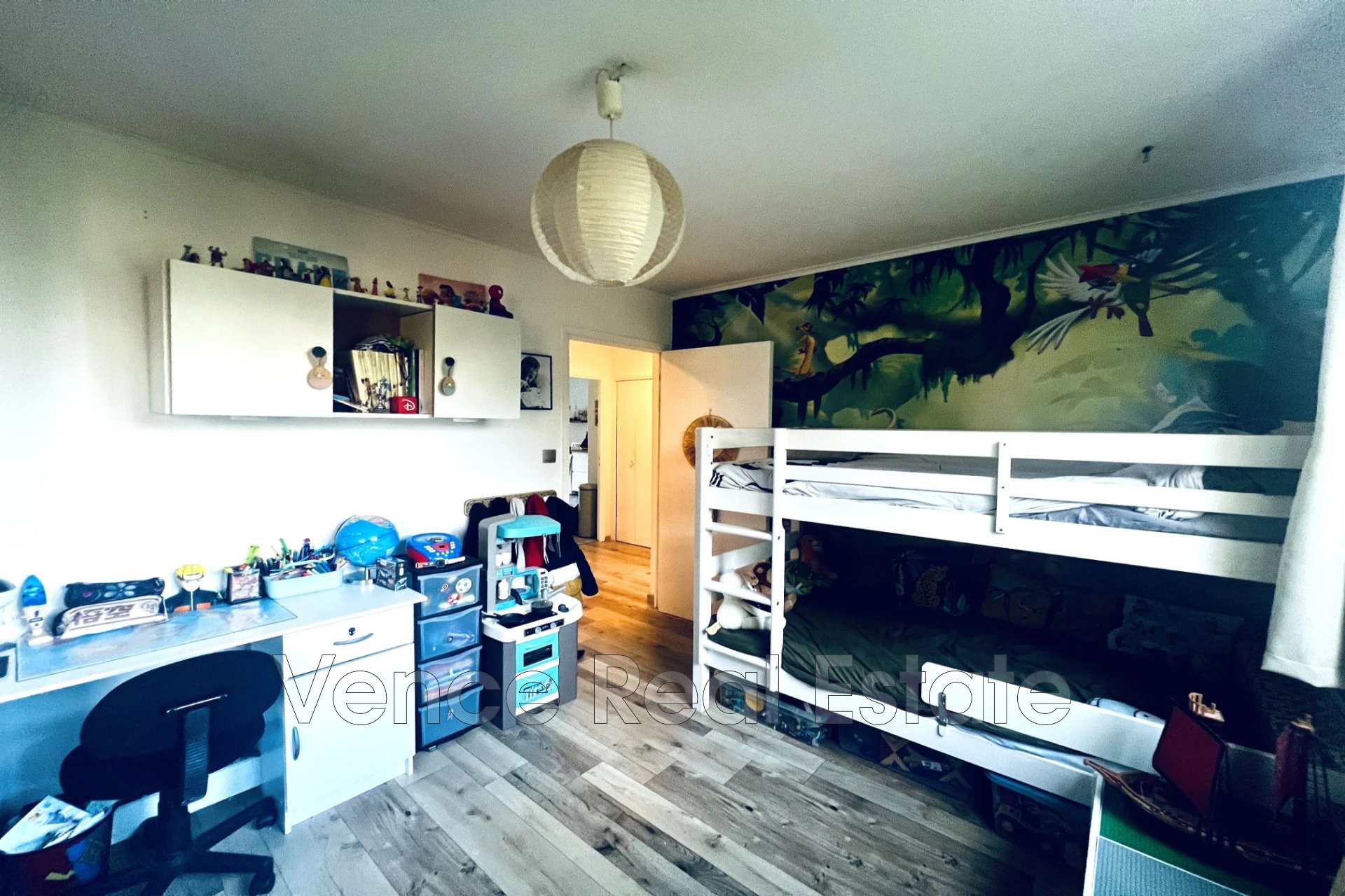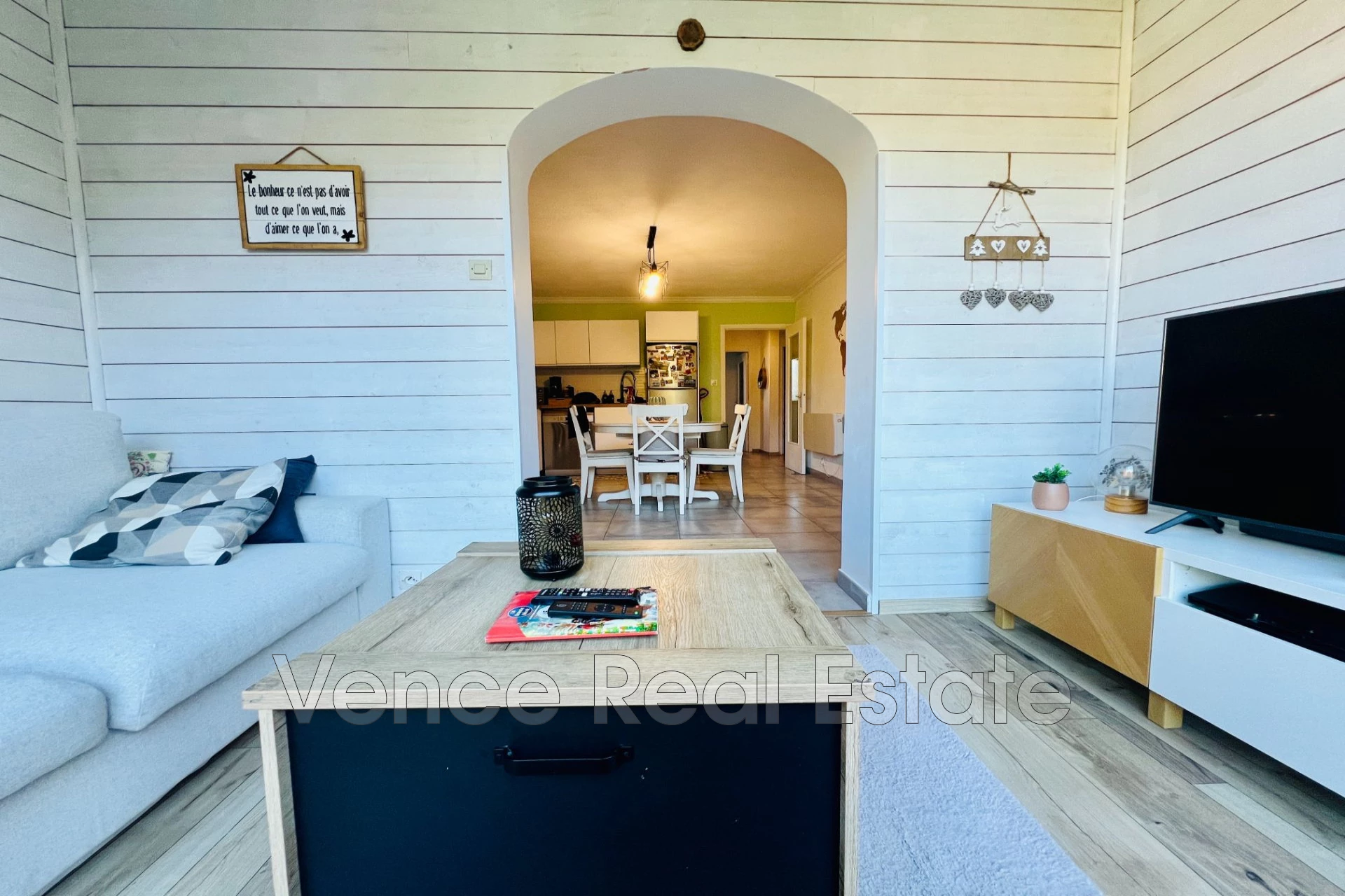 close to the center of Vence, very nice 2-bedroom apartment in nearly new condition with quality features, including 2 bedrooms with built-in wardrobes, living room, fitted kitchen, 1 bathroom, separate toilet, enclosed loggia, cellar, parking, bike storage, and a community with a swimming pool; a rare find in this area
